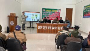 कार्यशाला के द्वितीय चरण में आशीष नौटियाल वन क्षेत्राधिकारी कुथनौर रेंज एवं शेखर राणा वन क्षेत्राधिकारी रंवाई रेंज द्वारा वनाग्नि काल 2026 से पूर्व की तैयारियों, वनाग्नि प्रबंधन की रणनीतियों, स्थानीय सहभागिता एवं मानव–वन्य जीव संघर्ष न्यूनीकरण के विभिन्न पहलुओं पर विस्तृत चर्चा की गई।