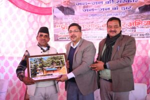 मुख्यमंत्री पुष्कर सिंह धामी के निर्देशो के क्रम में और जिलाधिकारी प्रशांत आर्य के कुशल मार्गदर्शन में जनपद में संचालित 45 दिवसीय विशेष अभियान ‘जन-जन की सरकार, जन-जन के द्वार’ के अंतर्गत आज विकासखंड नौगांव की न्याय पंचायत तिया के इंटर कॉलेज कलोगी में भव्य बहुउद्देशीय शिविर/जनसुनवाई कार्यक्रम का आयोजन किया गया। शिविर में श्याम डोभाल, अपर सचिव नवनीत पांडेय, उपजिलाधिकारी बड़कोट बृजेश कुमार तिवारी की उपस्थिति में विभागों के अधिकारियों ने मौके पर मौजूद रहकर ग्रामीणों की समस्याओं को सुना और सरकारी योजनाओं का लाभ पात्र व्यक्तियों तक पहुँचाया।